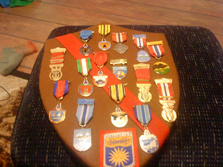 Da vi solgte pappas hus, fant vi disse medaljene i en pose i sanguniformen, og jeg syntes det var på tide å få de opp på veggen. Nå henger de i leiligheten hans på Konsviktunet, slik at han kan ha glede av de, og tenke på mange turene han har vært med på.